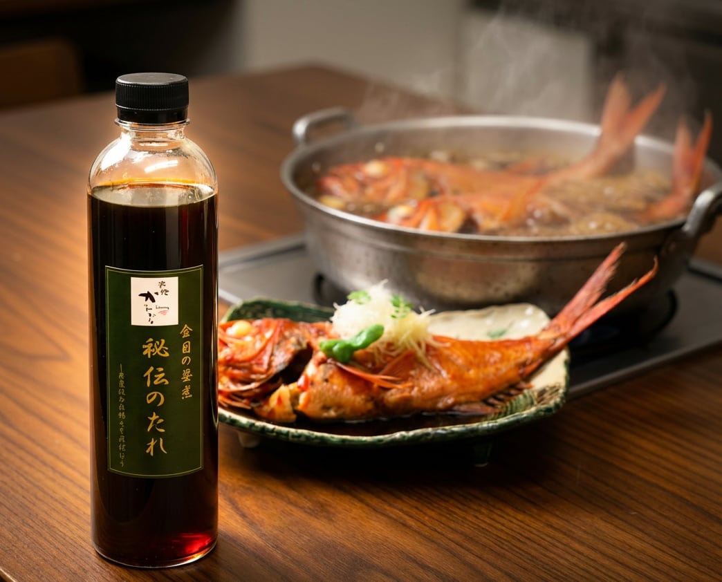 旅館かわなで大人気の『金目鯛の姿煮』の秘伝のタレのみの販売です。